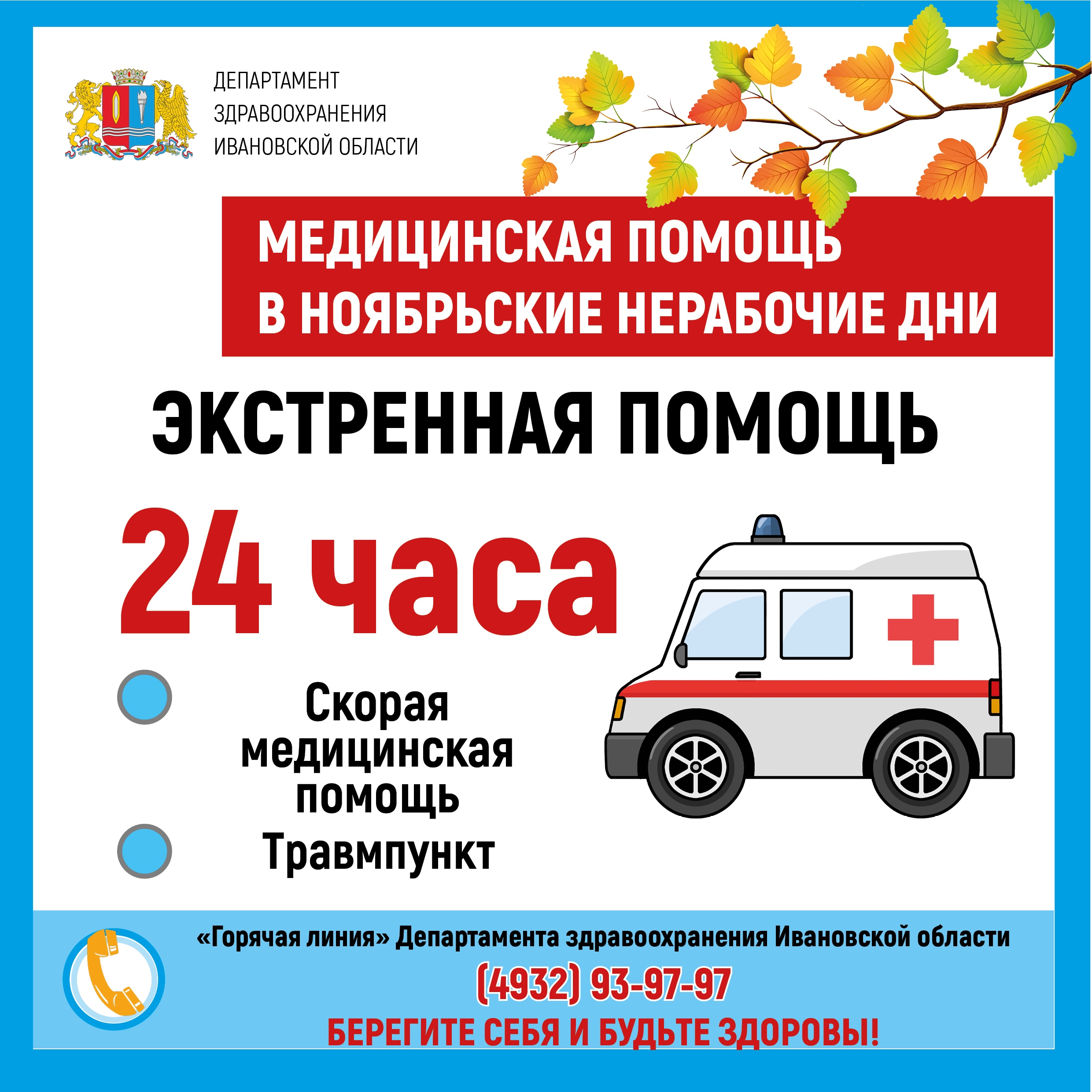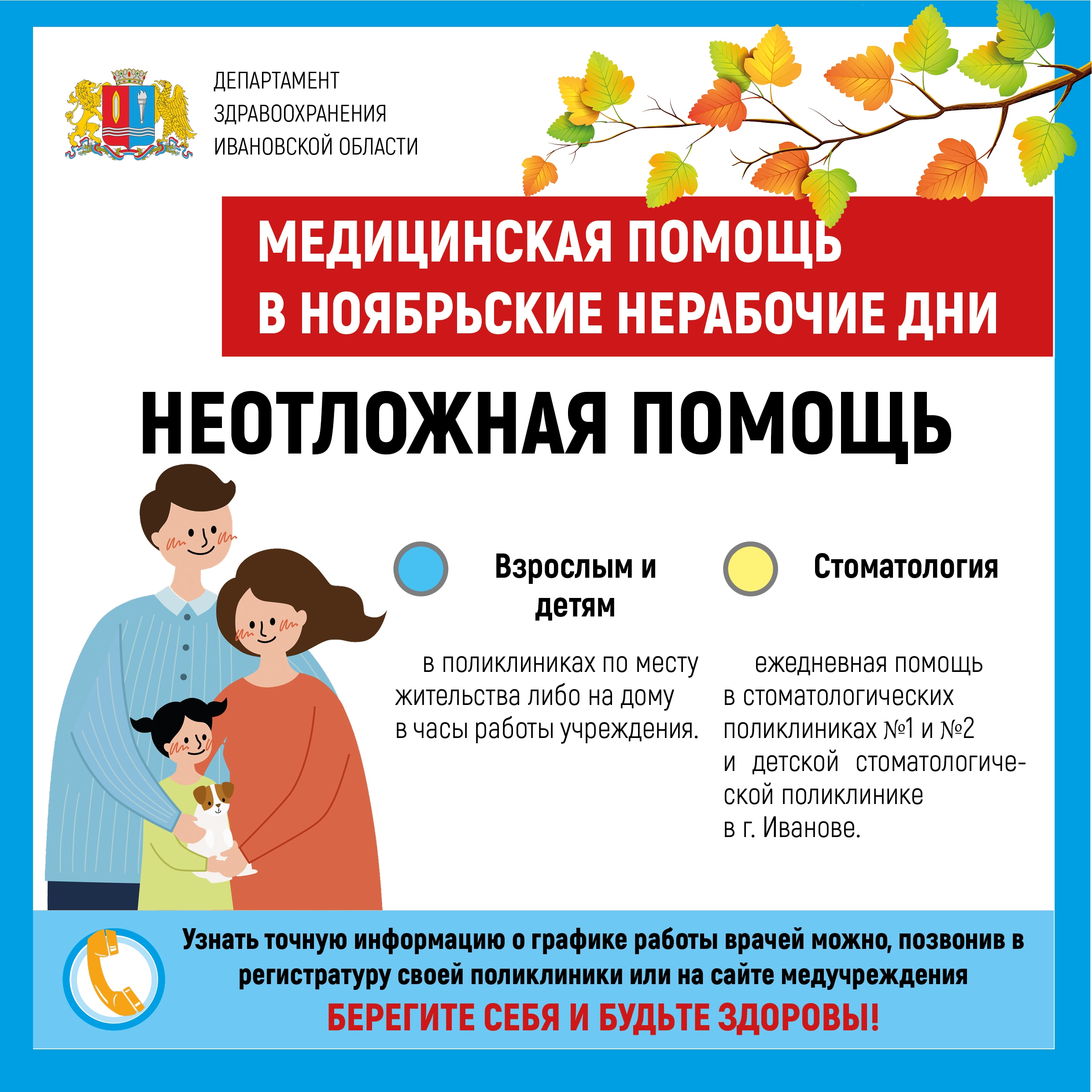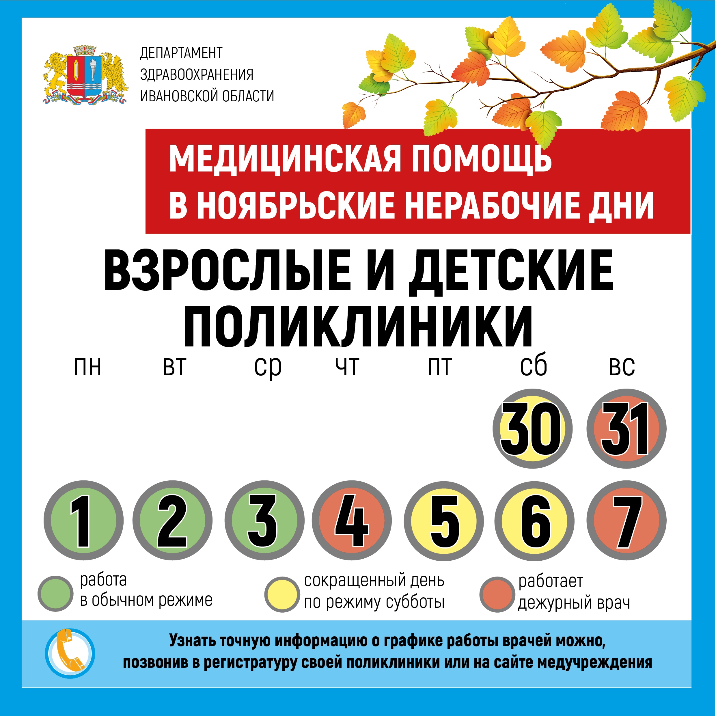 Работа медицинских организаций Ивановской области с 30 октября по 7 ноября
