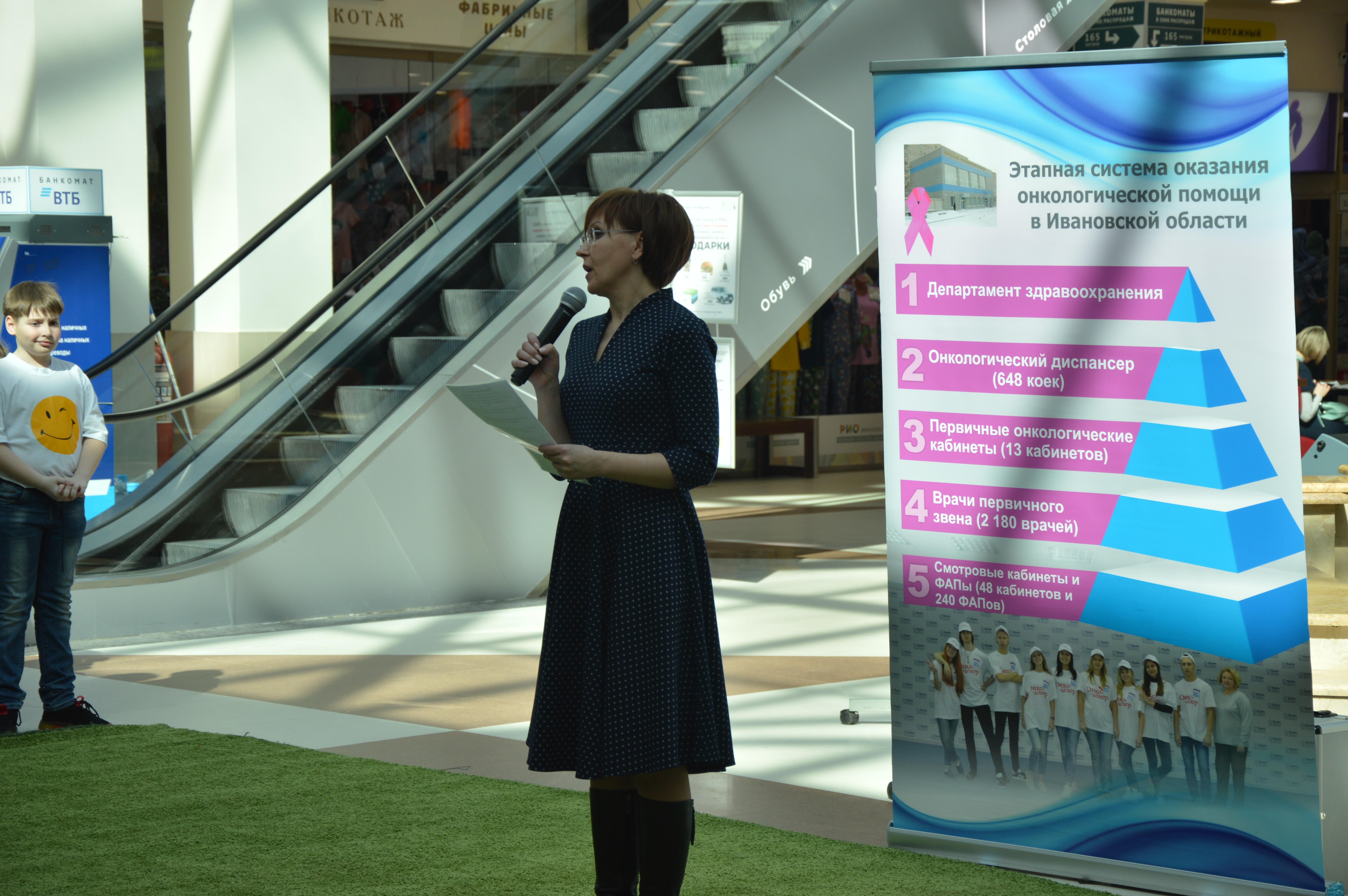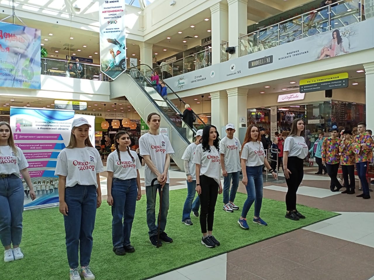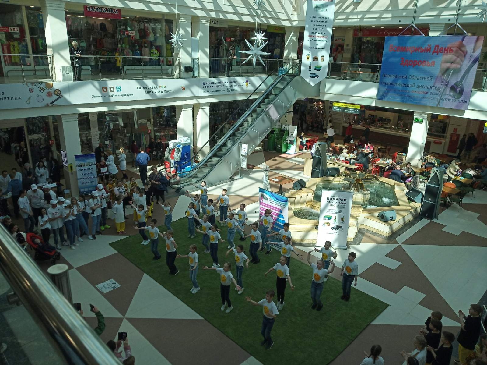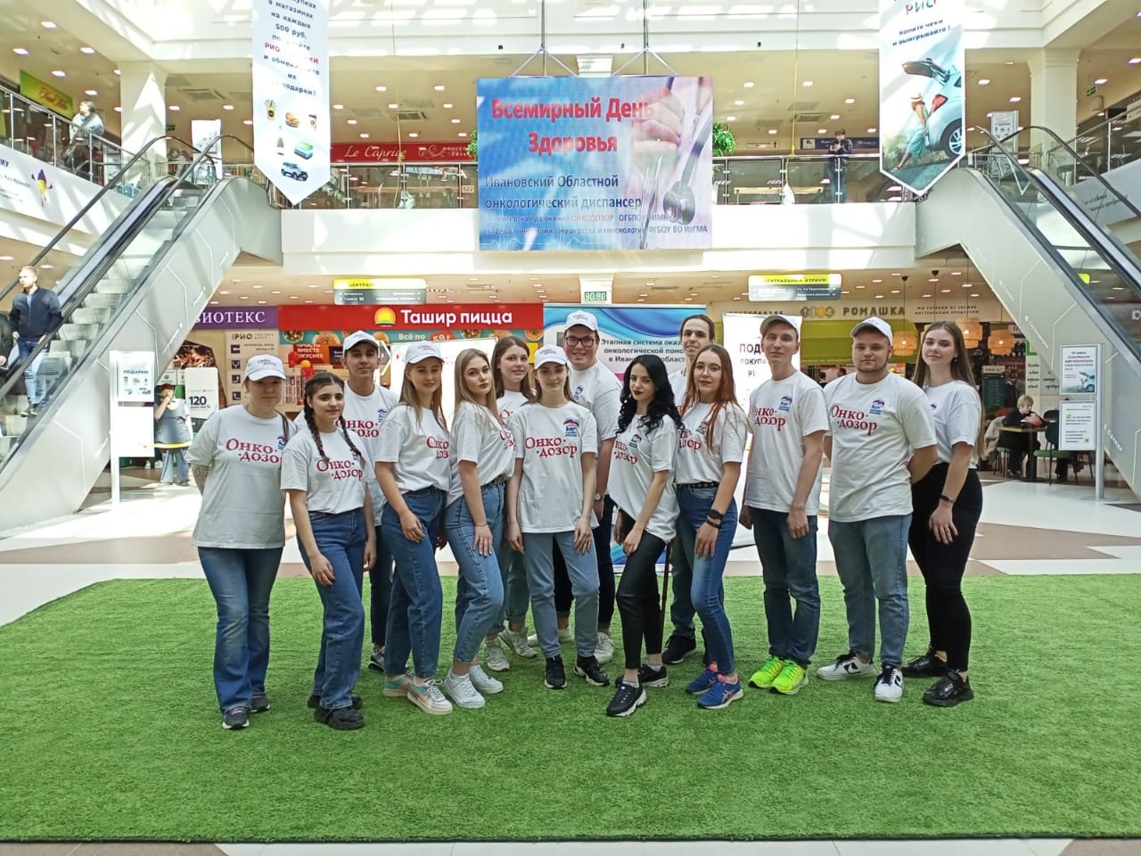 15 апреля в ТРЦ «РИО» прошел праздник, посвященный Всемирному Дню Здоровья. В акции приняли участие волонтеры молодежного движения ОНКОДОЗОР Ивановского медколледжа, детский творческий коллектив ГРАНИ гимназии №3 г. Иваново, а также сотрудники Ивановского областного онкологического диспансера и кафедры онкологии, акушерства и гинекологии ИвГМА, всего более 100 участников. С приветственным словом выступила заместитель главного врача ОБУЗ ИвООД Данилова Елена Владимировна. Всем посетителям торгового центра «РИО» напомнили о важной роли здоровья в нашей жизни, о здоровом образе жизни и профилактике рака. Женщины смогли пройти мастер-класс по самообследованию молочных желез. Желающие поменяли сигарету на конфету, сделали первый шаг к отказу от курения. Посетителям предлагали проверить работу легких и провести пульсоксиметрию. Также психологом проводился интересный тест «Цвет твоего настроения». Волонтеры раздавали посетителям листовки по ЗОЖ и профосмотрам. Получился настоящий Праздник Здоровья для детей и взрослых!